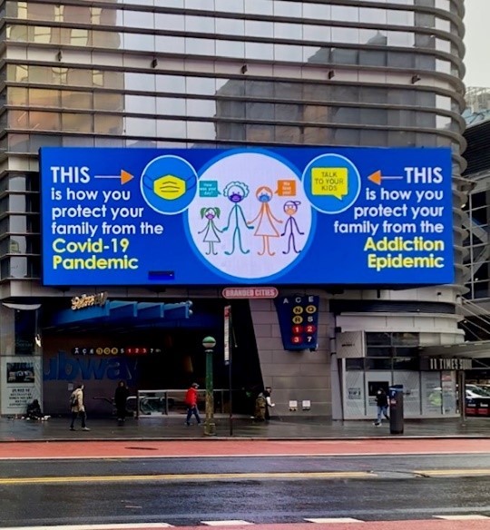 PDFNJ received first place in the digital display category for its Masking Campaign public service announcement that can be seen on a billboard located at 11 Times Square in New York City, as well as 72 public service stations along the Garden State Parkway and New Jersey Turnpike. The Masking Campaign educates the public about dual health concerns affecting New Jersey and the country: the COVID-19 pandemic and the opioid epidemic.