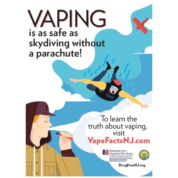PDFNJ won a second-place award in the poster category for its Vaping Campaign poster, which educates students across New Jersey about the dangers of vaping and e-cigarettes and making healthy choices for themselves. The posters were distributed to 3,558 middle schools throughout New Jersey.