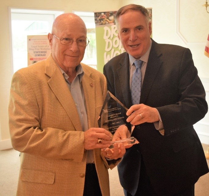 In 2018, I had the honor to present Powell with the Drugs Don’t Work in NJ Founder’s Award, recognizing his work and dedication to our cause of creating drug-free work spaces. All of us at PDFNJ will truly feel his loss, as well as, the guidance he has provided to the Partnership over the years. He was an integral contributor to PDFNJ’s Drug’s Don’t Work Program that has helped and continues to help thousands of New Jersey businesses establish a drug-free and safe working environment for their employees.