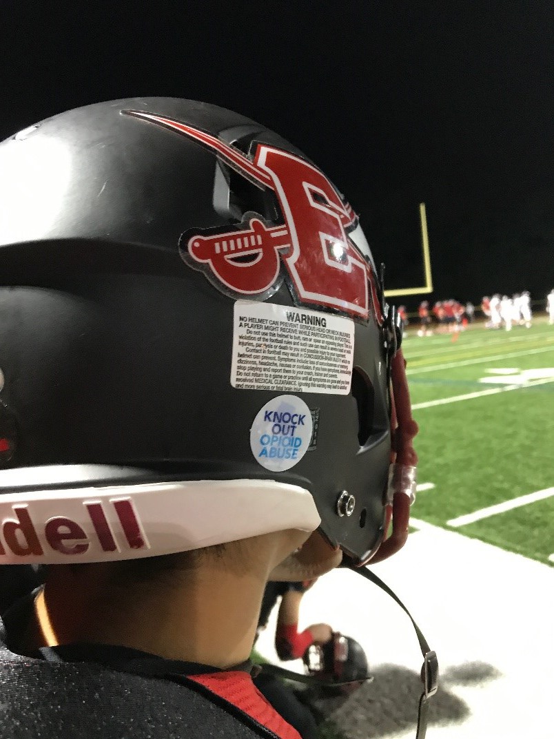 Several high school football teams throughout the state, including Emerson High School in Bergen County, got involved in Knock Out Opioid Abuse Day by wearing special helmet stickers.