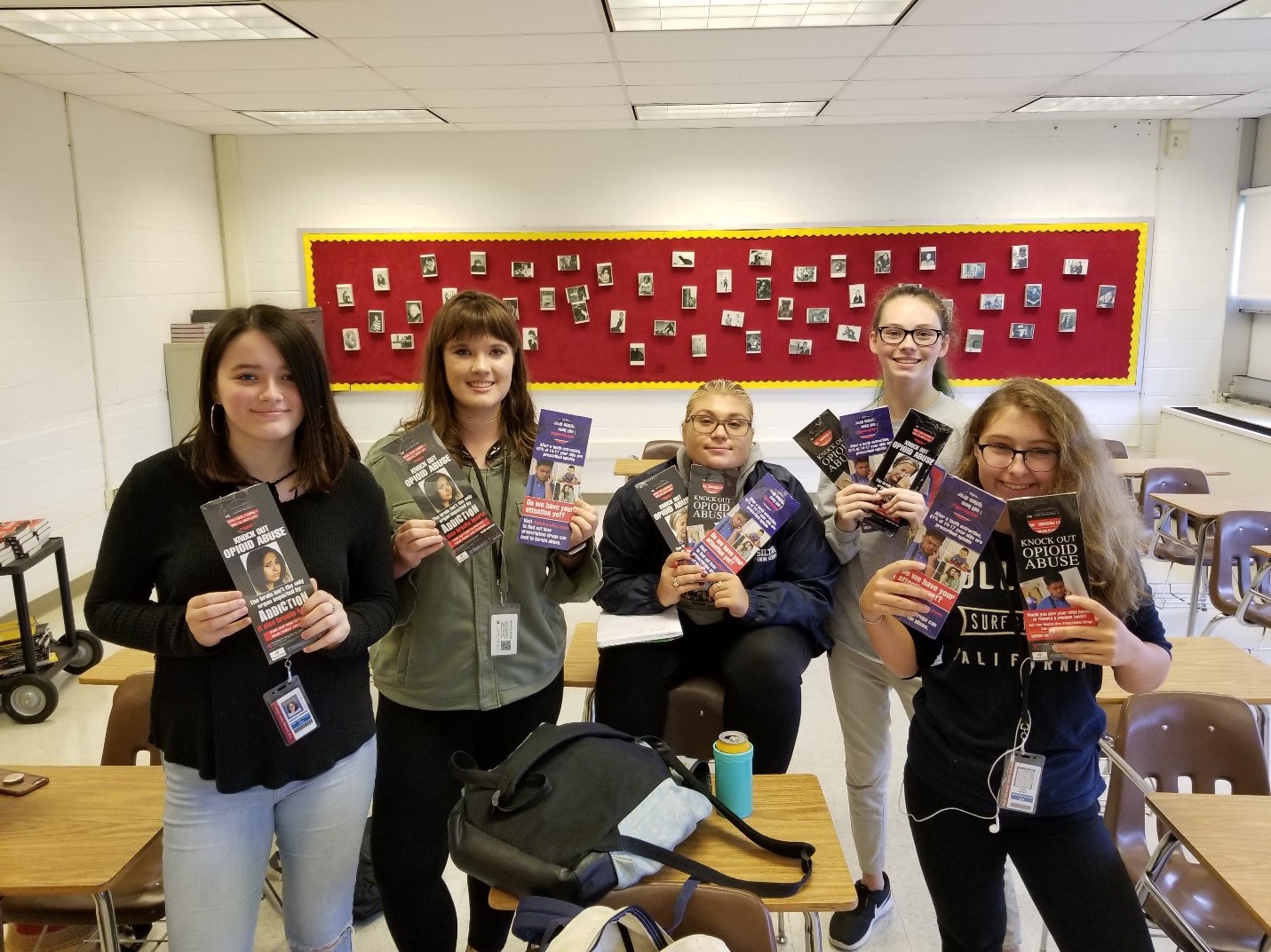Members of Wall High School’s Delta Club distributed materials throughout the school to spread the message of Knock Out Opioid Abuse Day to their peers.