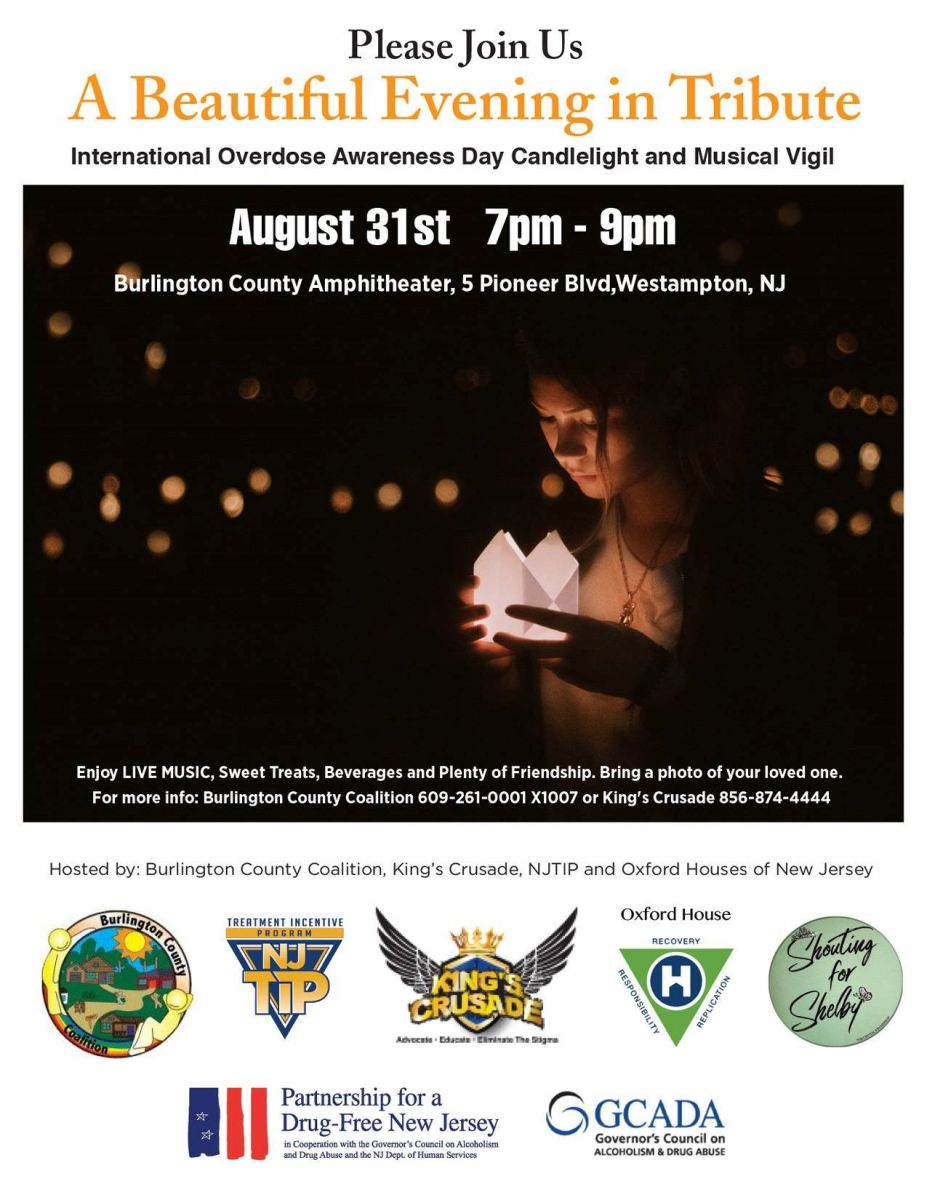Friday marks an important day for people throughout the world who have lost a family member, friend or other loved one to a drug overdose. August 31 is International Overdose Awareness Day, a time to remember those who have died far too soon and support those suffering from the grief of losing a loved one. The event also aims to reduce the stigma associated with addiction and overdose deaths. Several vigils will be held throughout New Jersey, including one organized by the Burlington County Coalition, king’s Crusade, NJTIP and Oxford Houses of New Jersey from 7 to 9 p.m. Friday at the Burlington County Amphitheater in Westampton.