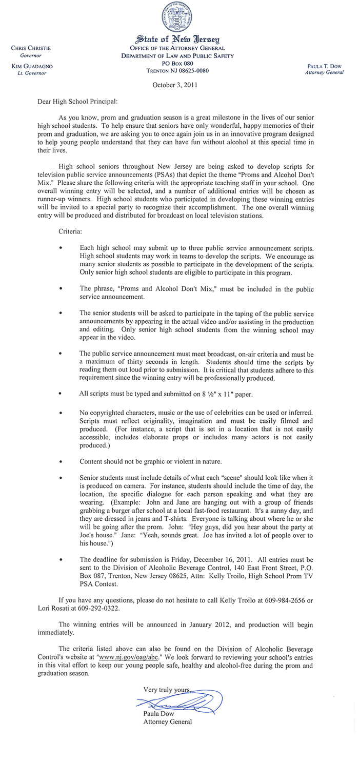 NJ ABC Calls for Proms and Alcohol Prevention Contest Applications